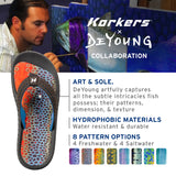 All-day comfort with art and sole. Featuring Cush-Tech™ anatomical molded premium EVA. Grip all terrain with a non-marking Kling-On Deck™ rubber with incredible grip on wet surfaces. Not to forget the star of the show, beautiful fish prints from Derek DeYoung one of the greatest fish artists of our time.