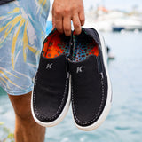 It’s a summer ready shoe. It’s a hidden slipper. And it’s 100% comfortable. Featuring our Cush-Tech™ uber-comfy footbed for all-day wear. Grip all terrain with a non-marking Kling-On Deck™ rubber with incredible grip on wet surfaces. Not to forget the star of the show, beautiful fish prints from Derek DeYoung one of the greatest fish artists of our time.
