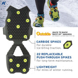 TRACTION: 22 replaceable push-through carbide studs for ice-biting, on demand traction. Lightweight, minimal and supportive for winter running.