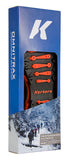 Traction: includes 16 ultra durable carbide studs per foot (32 total) for extra traction on icy surfaces.